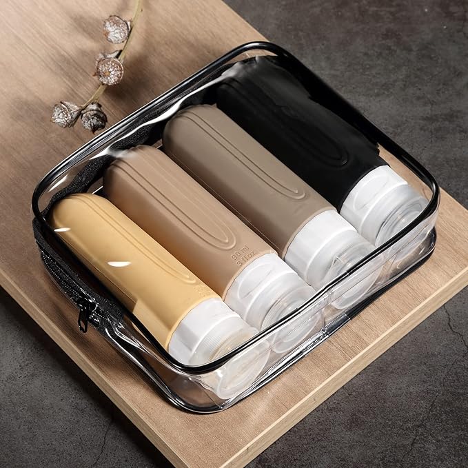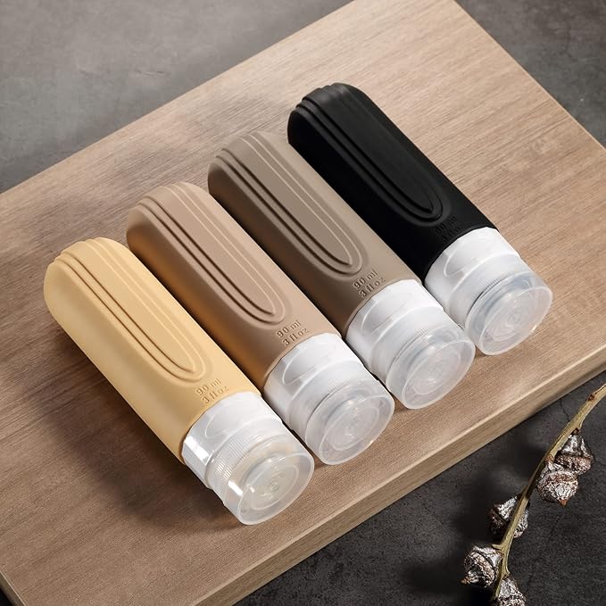 Travel Bottles for Toiletries, Tsa Approved 3oz Travel Size Containers BPA Free Leak Proof Refillable Liquid Silicone Squeezable Travel Accessories for Shampoo Conditioner Lotion (4 Pack)