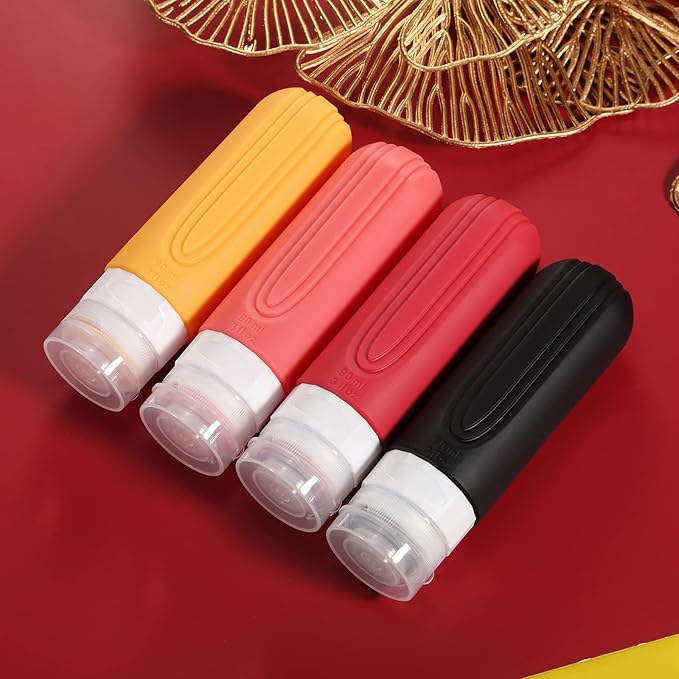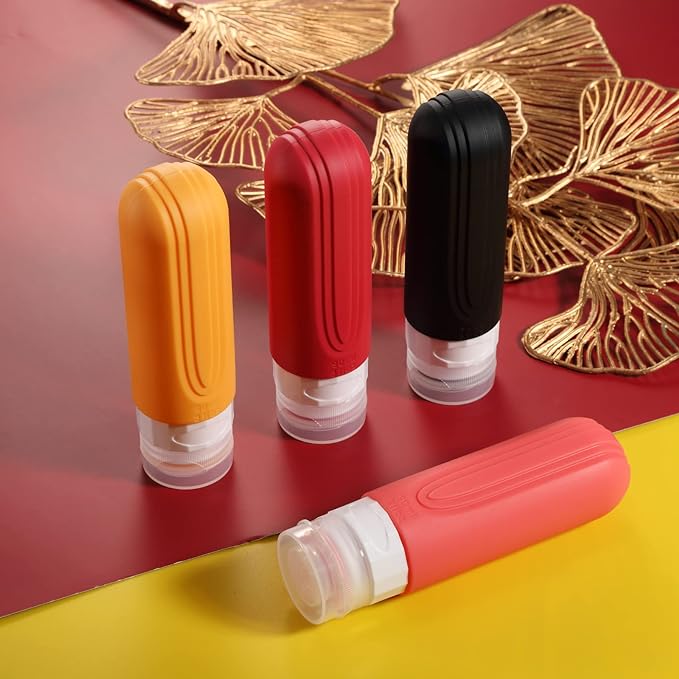 Travel Bottles for Toiletries, Tsa Approved 3oz Travel Size Containers BPA Free Leak Proof Refillable Liquid Silicone Squeezable Travel Accessories for Shampoo Conditioner Lotion (4 Pack)