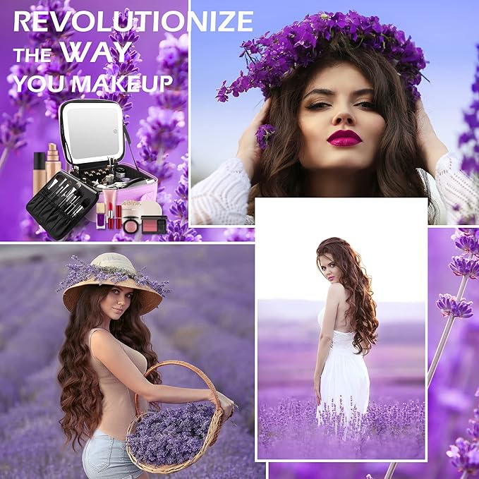 MOMIRA Travel Makeup Bag Cosmetic Bag Makeup Organizer Bag with Lighted Mirror, Adjustable Brightness in 3 Color Scenarios, Waterproof Makeup Train Case, Gift for Women - Purple