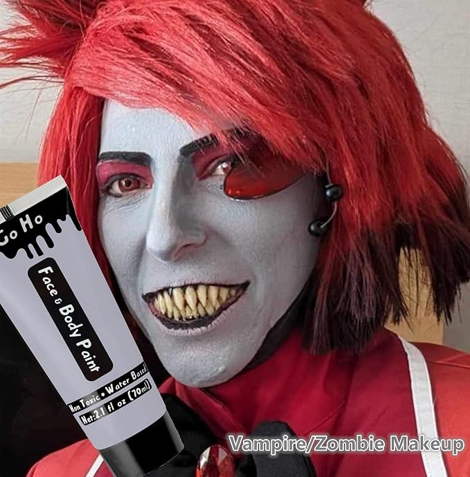 Go Ho Grey Face Body Paint Washable (2.37oz/pc),Water Based Cream Grey Face Paint,Gray Body Paint for SFX Cosplay Costumes Festivals Halloween Vampire Zombie Makeup