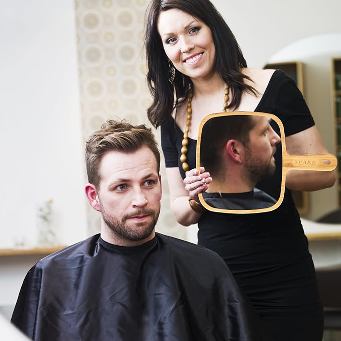 - 【LARGE VIEWING AREA】➤ 7.7" by 8.9" large viewing surface.You can see your face and the back of your head at a glance. Perfect barber mirror for self hair cut and hair styling.