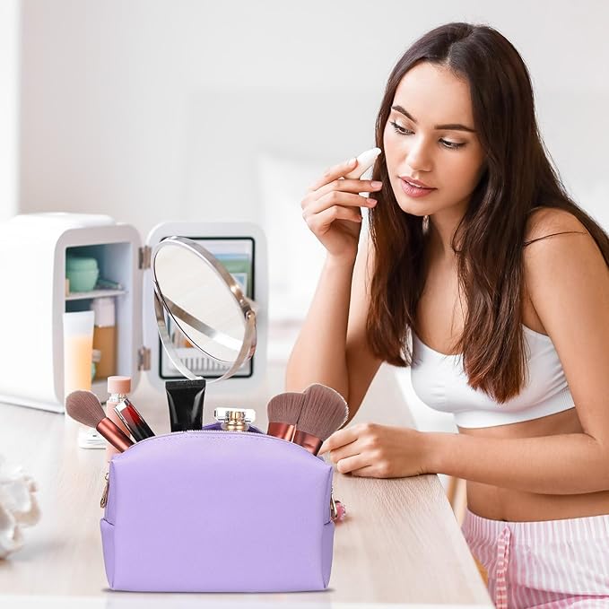 Sanwuta 9 Pcs Makeup Bags Bulk PU Double Zippers Cosmetic Bag Makeup Toiletry Pouch Portable Travel Organizers Case for Women Bachelorette Party End of The Year Bridesmaid Gift(Purple)