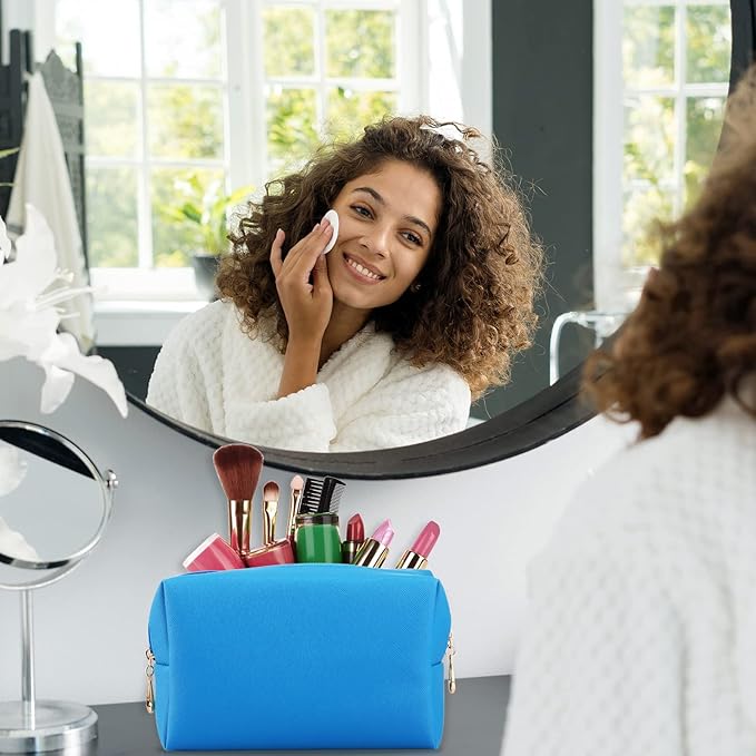 Sanwuta 9 Pcs Makeup Bags Bulk PU Double Zippers Cosmetic Bag Makeup Toiletry Pouch Portable Travel Organizers Case for Women Bachelorette Party End of The Year Bridesmaid Gift(Blue)