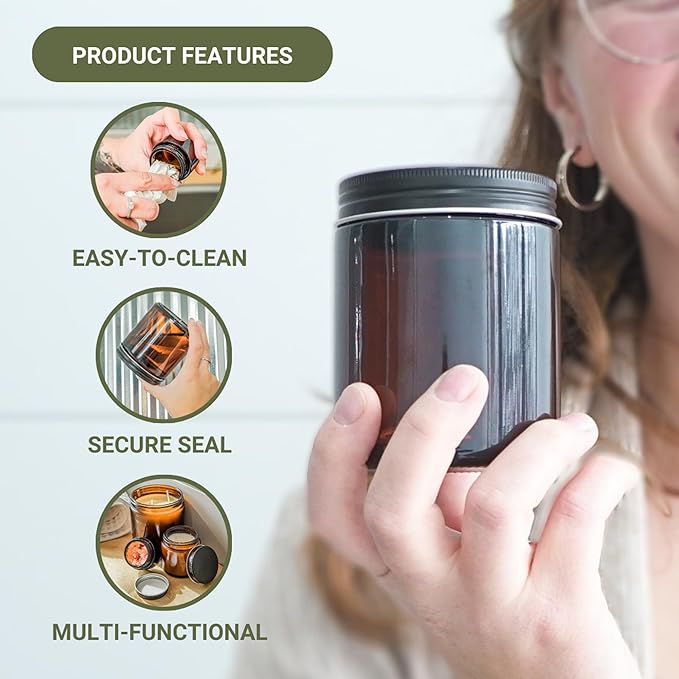- Durable & multi-purpose: Nature Packaged Glass Amber Jars are made with durable glass designed to withstand regular use. Ideal for all sorts of beauty products like creams, lotions, and more.