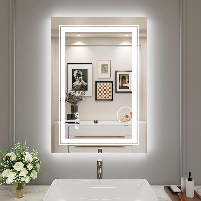 LED Mirror for Bathroom, 20"X28" with 8 RGB Backlit +3 Front Lit (Adjustable Individually), Anti-Fog, Lighted Bathroom Vanity Mirror for Wall, Shatterproof, Memory Function, Tempered Glass