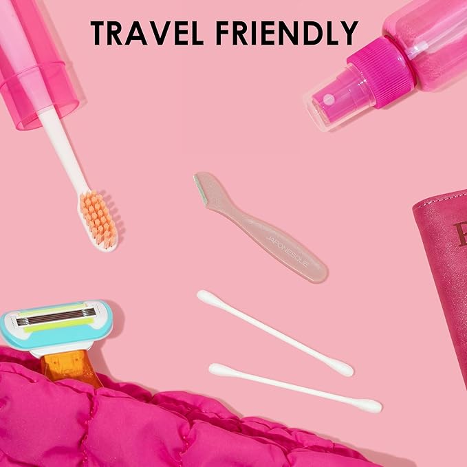JAPONESQUE Mini Touch Up Razors - Travel Size Dermaplaning Tool Set - 3 Piece Mini Travel Razor Kit, One Blade Fixed Dermaplane Razor For Women