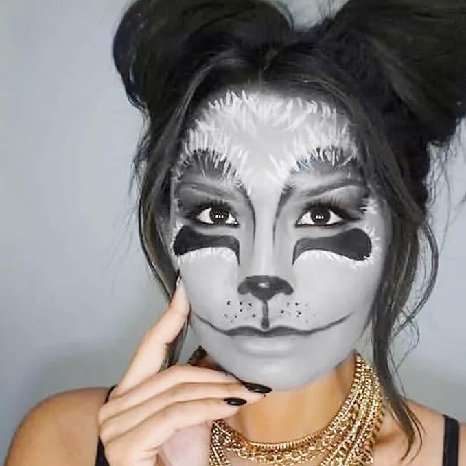 - ✔Professional Grayscale Homestuck Grey Zombie Makeup Face Paint --- 2.37Oz/70g for our gray face paint,meet your need for grayscale homestuck gray zombie makeup with full coverage.Infused with special formula,no fading and no cracking when wearing it.The nice consistency makes it blend into the skin easily with a brush, sponge, or your finger.It may need some time to dry.To avoid smearing when put on,we advise use the setting powder or setting spray after applying the face body paint