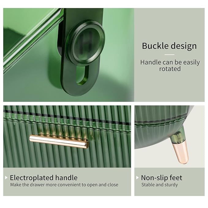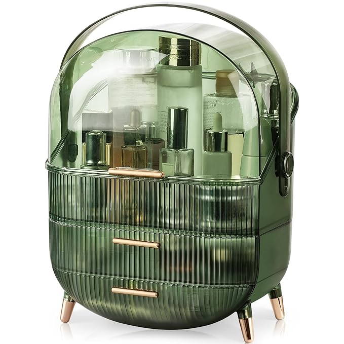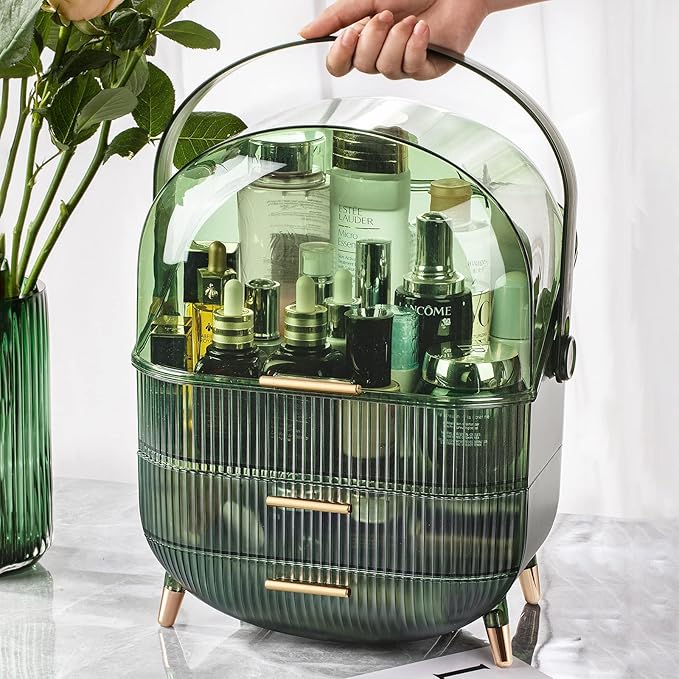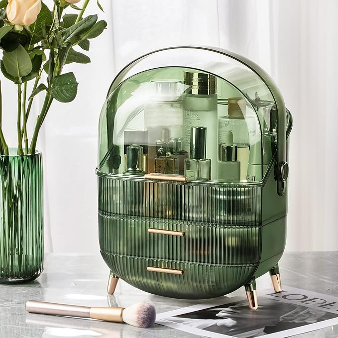 CANITORON Makeup Organizer,Large Capacity Skincare Organizer for Vanity,Cosmetic Organizer with 2 Drawers and Transparent Cover for Bedroom Countertop and Bathroom Countertop Storage.(LGreen)