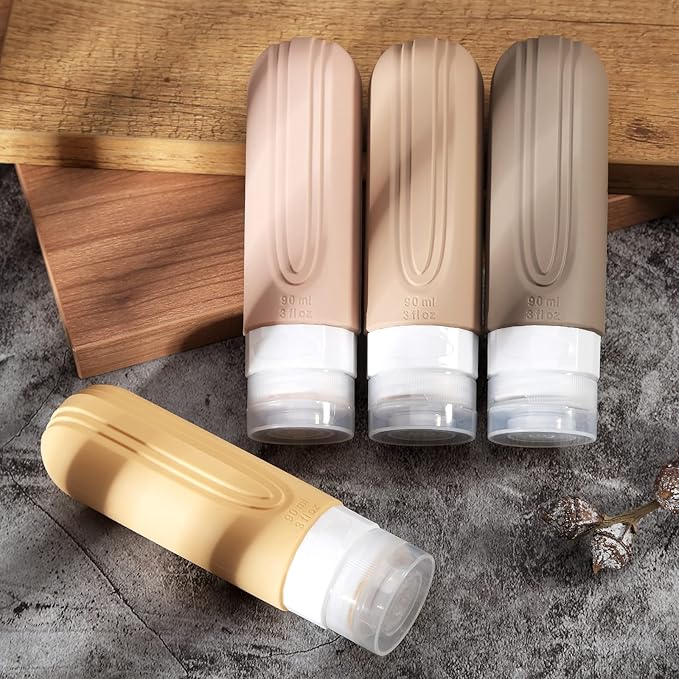 Travel Bottles for Toiletries, Tsa Approved 3oz Travel Size Containers BPA Free Leak Proof Refillable Liquid Silicone Squeezable Travel Accessories for Shampoo Conditioner Lotion (4 Pack)