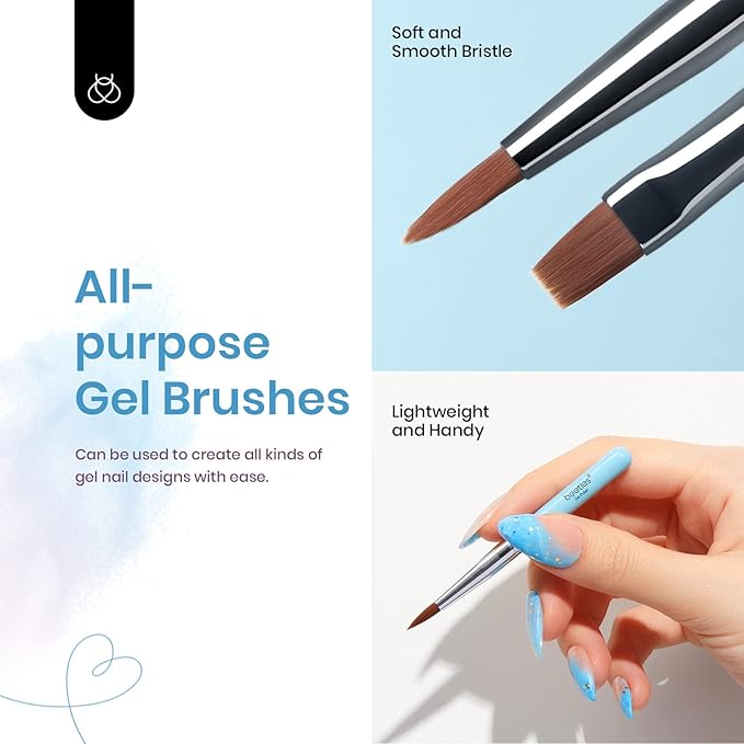 - [2024 New Arrival]: What you get: 5 Colors 7.5ml/0.25oz gel nail polish + 1pcs 7.5ml/0.25oz clear blooming gel + 2pcs nail art brushes. Enjoy Diy Manicure with Beetles Gel System and add beauty and charm to your nails. Clear Blooming Gel suits for all nail art system. Apply blooming gel before color gel, then use nail art brush to bloom out any effect you like.
