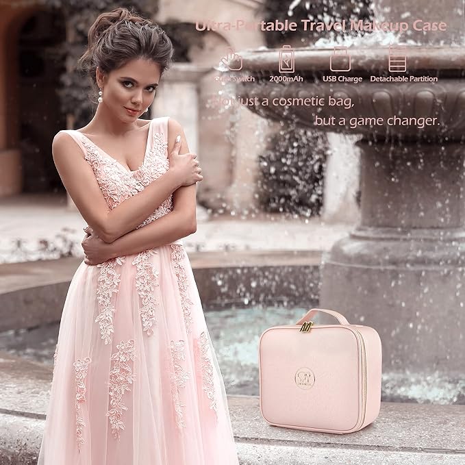 MOMIRA Travel Makeup Bag Cosmetic Bag Makeup Organizer Bag with Lighted Mirror, Adjustable Brightness in 3 Color Scenarios, Waterproof Makeup Train Case, Gift for Women - Phosphor
