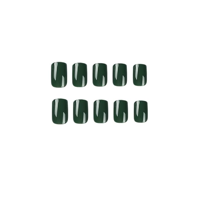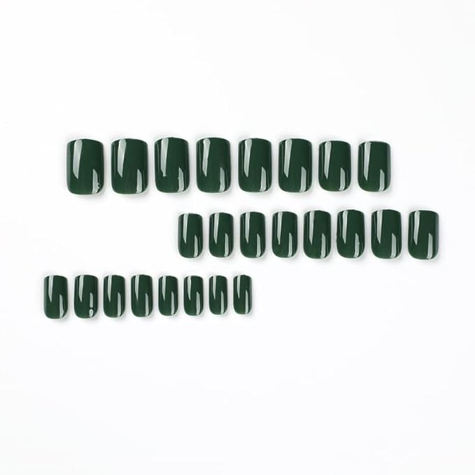 Dark Green Press on Nails Medium Square KXAMELIE Natural Acrylic Glue on Nails Coffin Nails Press ons Medium Short Gel Nails Reusable Fake Nails 2025 Trendy Solid Color False Nails 24Pcs