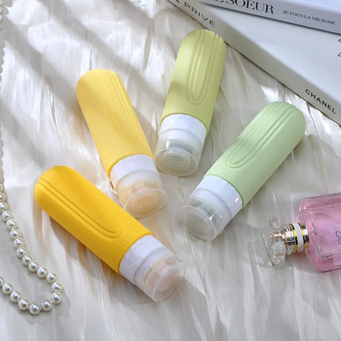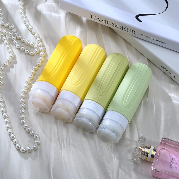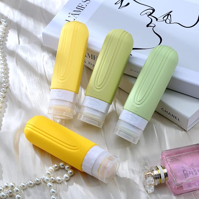 Travel Bottles for Toiletries, Tsa Approved 3oz Travel Size Containers BPA Free Leak Proof Refillable Liquid Silicone Squeezable Travel Accessories for Shampoo Conditioner Lotion (4 Pack)