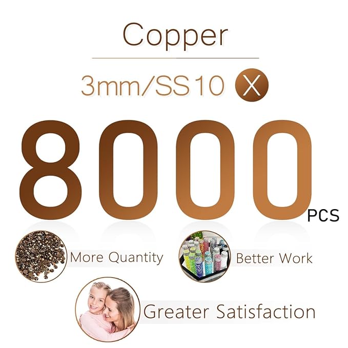 qiipii 8000PCS 3mm Copper Resin Rhinestones for Crafts Brown Flatback Jelly Rhinestones Bulk SS10 Non-Hotfix Coffee Stones Diamonds Crystals Gems for Mugs Tumblers Bottles Cups DIY Crafts Decoration