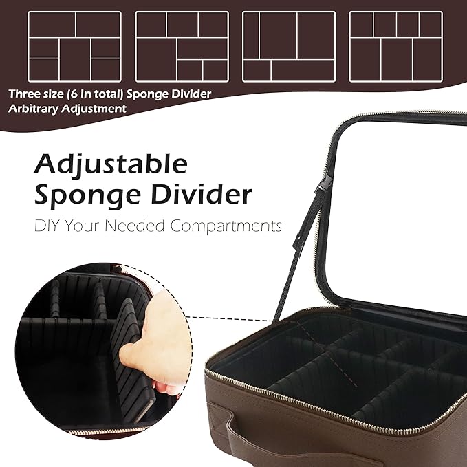 - 💄【Customizable Makeup Storage】Organize your cosmetics effortlessly with MOMIRA's makeup case. Featuring six detachable shock-resistant EVA partitions, you can customize the storage space to fit your needs. Say goodbye to messy makeup bags as it protect your cosmetics from damage or leaks. The included spacious brush bag enables you to carry more makeup brushes while also maintaining the cleanliness and dryness of the makeup organize.
