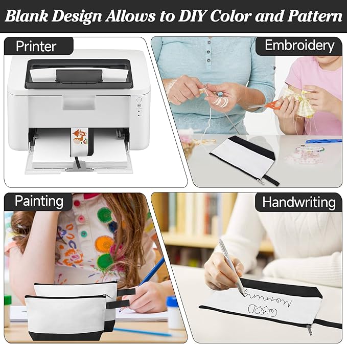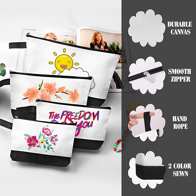 10 Pieces Cotton Canvas Makeup Bag with Bottom and Strap, Multi-Purpose Cosmetic Bag with Zipper Travel Toiletry Pouch, Blank DIY Craft Bag (White&Black, S)