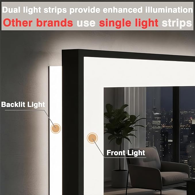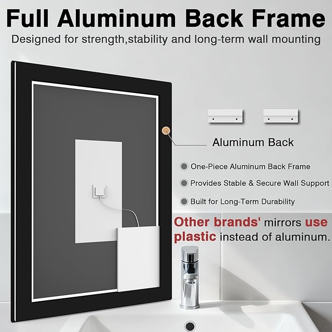 48x40 LED Lighted Bathroom Mirror - Black Aluminum Framed (Front and Backlit), Anti-Fog Bathroom Mirror with Lights,Stepless Dimmable LED Mirror,3 Colors Smart Mirror(Horizontal/Vertical)