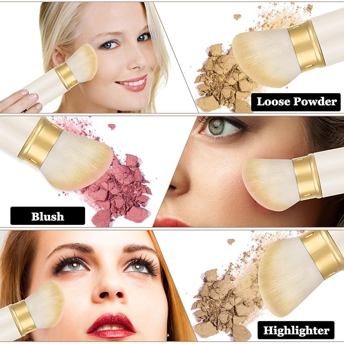 Falliny Retractable Kabuki Makeup Brush, Angled Travel Powder Foundation Blush Brush Makeup Brush for Blush, Sunscreen,Bronzer, Buffing, Concealer,Highlighter, Powder Cosmetics