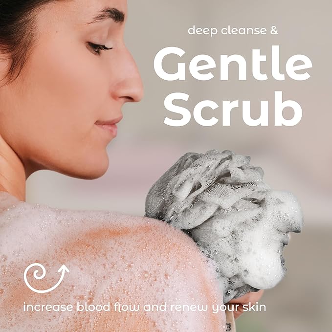 - MORE LATHER, LESS BODY WASH β A relaxing bath requires the perfect amount of rich lather. Our shower puff pairs perfectly with soaps and body washes, producing a luxurious lather effortlessly.