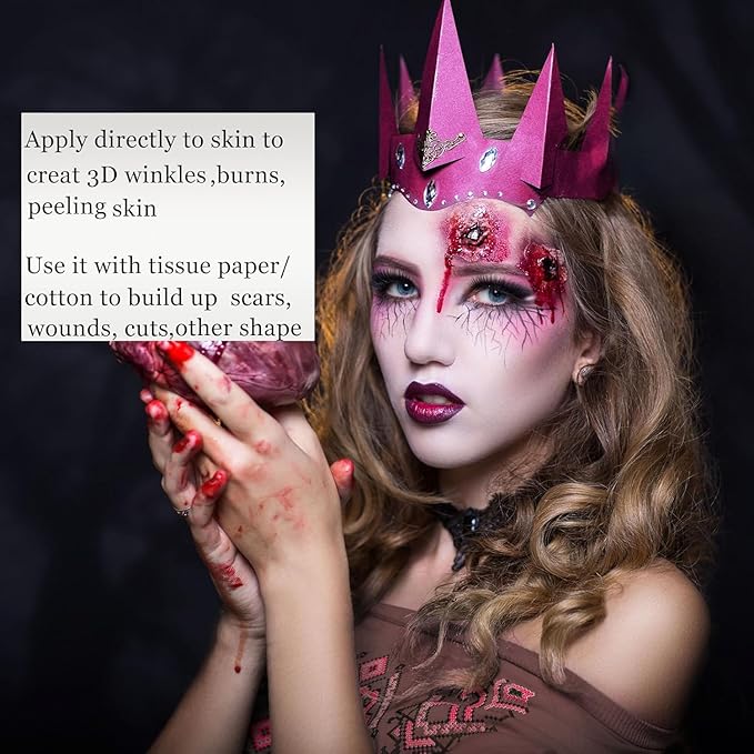 - Perfect for making realistic-looking scars, wounds, cuts, use with cotton and tissue paper to build up variety of different scary looks.