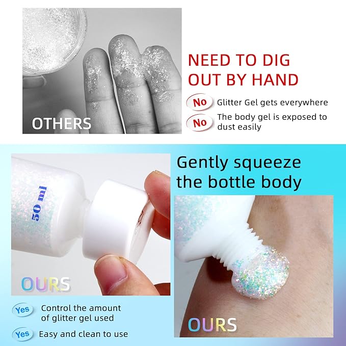 - 【Ideal Choice】Give the body glitter gel to someone close to you who loves glittery makeup! Holographic colored glitter is perfect for creating bold and creative makeup looks.