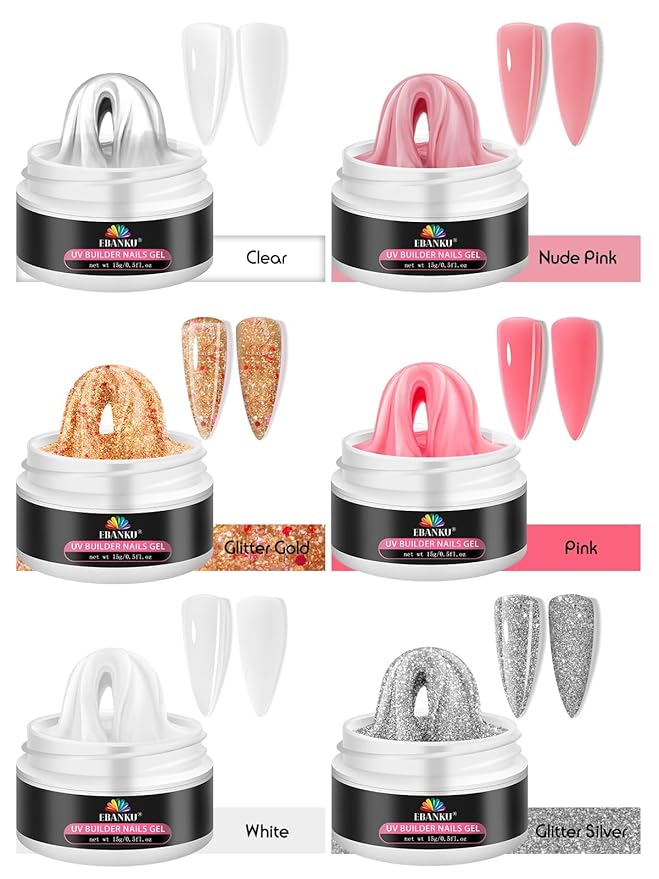 EBANKU Solid Builder Gel for Nail- 6 Colors Gold Hard Gel for Nails Extension Non-Sticky Long-Lasting Solid Gel Kit with 3D Silicone Mold for Valentine Carving Nail Art Salon Home Use