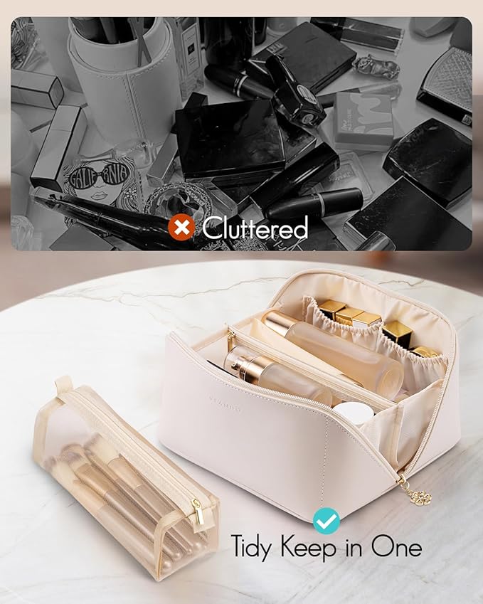- Roomy & Portable: 9.1 x 4.8 x 4.7 inches (0.53lbs) offers ample space for cosmetics, brushes, and toiletries. Maximizes storage without cluttering luggage—ideal for travel,daily cosmetic organizer