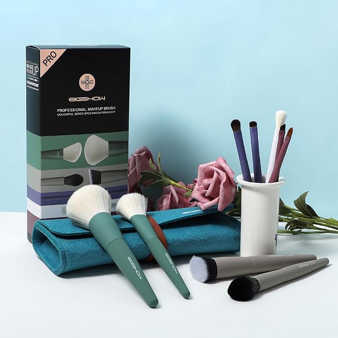 Makeup Brushes, EIGSHOW 5 Color Essential Travel Makeup Brush Set with Ultra Soft Synthetic Fibers for Powder Blush Concealer Contouring Highlighting