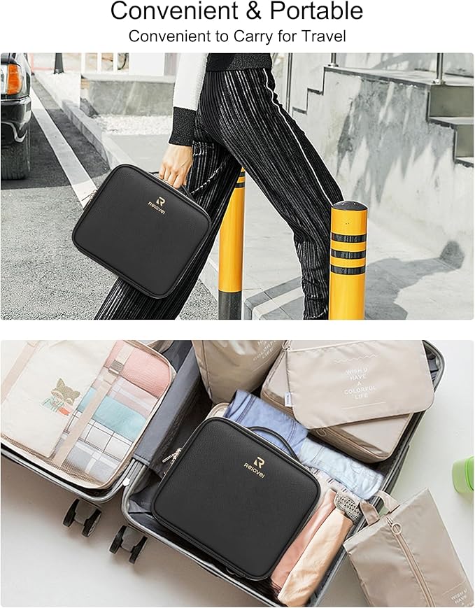 - Premium Material: This makeup bag surface material is made of high-quality PU leather, which is durable, water-resistant, and easy to clean. Built-in waterproof lining, easy to clean when has a stain on it. Dual-way smooth zipper, easy to access. Durable handle easy to carry.