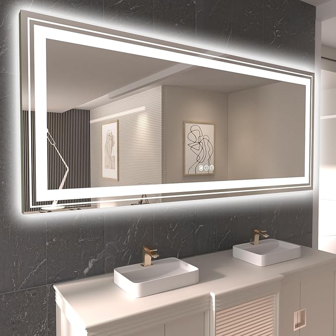 About This Double Lights&Front lights and Backlit: Snowdool LED Mirror are double lighted, with both front and back led strips,... Read more