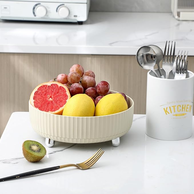 Anyoifax Makeup Perfume Organizer Tray 360 Degree Rotating Lazy Susan Skincare Lotion Organizer Spinning Cosmetics Storage for Dresser, Vanity, Bathroom Countertop, Large Beige