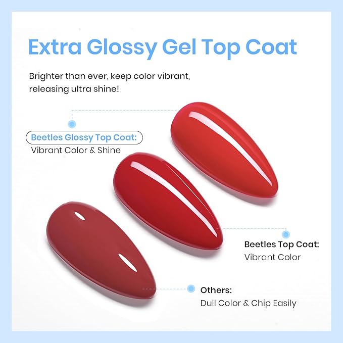 Beetles 20ml Gel Top Coat - No Wipe Clear Top Coat Extra Glossy Gel Nail Polish, Shine Finish and Long Lasting, Soak Off UV LED Lamp Cured Nail Art Manicure Salon Home Gift for Women
