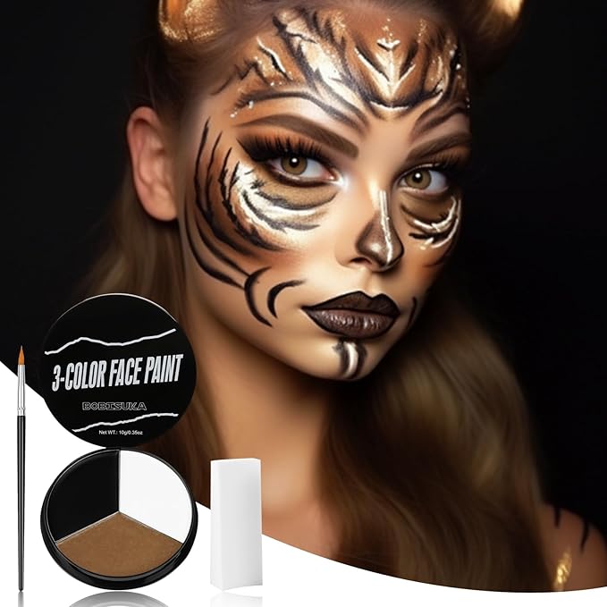 - This Halloween face painting kit comes with 3 intensive pigmented colors that applies easily with sponge and brush. Sponge could make blending, fading and smoothing effortless. Brush provides great control & precision for body and face painting.