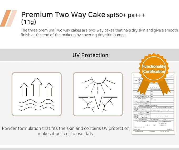 Enough Rich Gold Two Way Cake SPF50, Korean Makeup Setting Powder Foundation, Tattoo Cover Up, Sunscreen for Face, Loose Powder Makeup - Refill Including (#21 Transparent Beige, 0.39 oz)