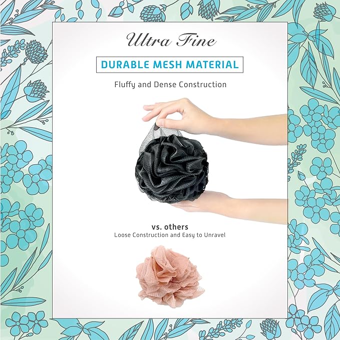 - QUALITY CONSTRUCTION - The loofahs are fluffy and durable with ultra fine mesh material, making them the perfect choice for your daily exfoliating routine. They are gentle on your skin, providing a comfortable and enjoyable experience.