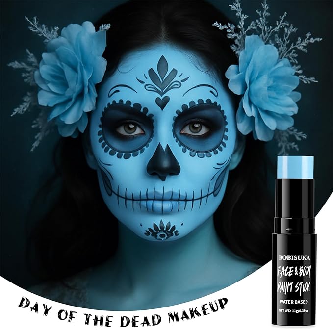 BOBISUKA Light Blue Face Body Paint Stick Washable Water-Based Face Paint Makeup Stick for Halloween Corpse Bride, Sally, Avatar, Skeleton, Skull, Smurf, Cosplay, SFX, Sports Eye Black & Costume Party