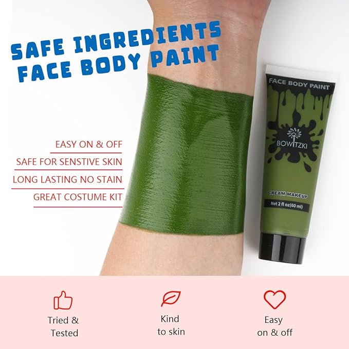 Bowitzki Face and Body Paint 2oz Cream Makeup 60ml Water Based Face Painting Special Effects For Adults Children Kids Halloween Christmas Party Stage Cosplay (Dark Green)