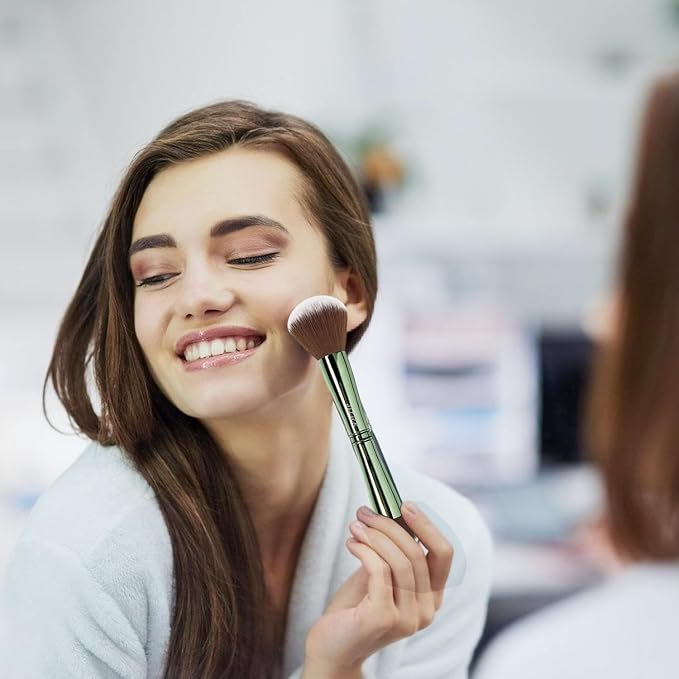 - 【4-in-1 Makeup Brush】Foundation / blush brush, powder brush, eye shadow brush, concealer brush integrated into a double-sided makeup brush, compact and travel-friendly.