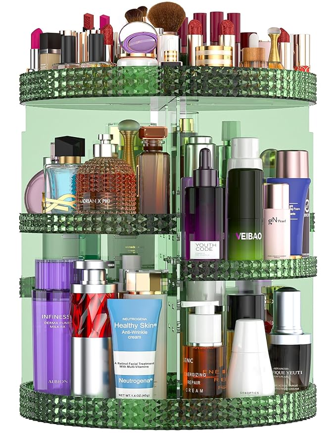 About This 🎁【 CONVENIENT DESIGN & NEW COLOR 】Hemtroy Rotating Makeup organizer follows fashion with a new color - emerald... Read more