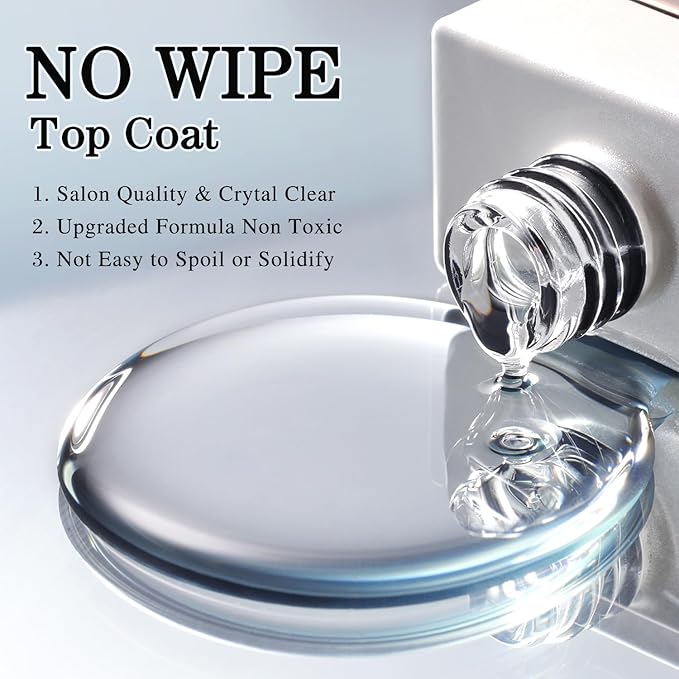 - 【Double Rhythm 2 PCS Top Coat Set】2 pcs 15ml clear top coat and no wipe top coat gel, need to be cured under UV or LED Lamp for 60-121s. Our top coat and base coat gel boasts superior adhesion properties, ensuring that your gel polish adheres firmly to the nail surface.