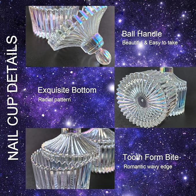 Monomer Dish, CORFULRA Dappen Dish for Acrylic Powder, Large Nail Cup for Nail Monomer Liquid, Glass Cup for Acrylic Nail Brush, Acetone Nail Polish Remover Holder. Rainbow