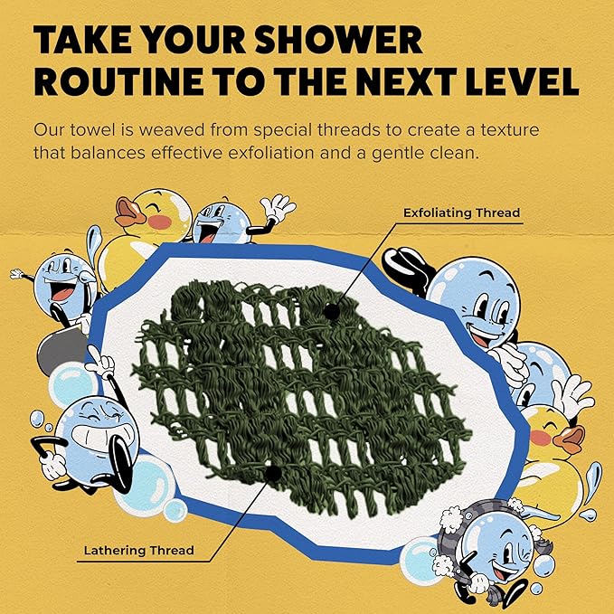 - Signature Rip-Resistant Fabric: Our towel is made up of two uniquely developed threads woven together to balance exfoliant effectiveness and efficient cleanliness. It has a thin lathering thread, tightly woven to create a rich lather for a complete clean. Plus, a textured exfoliating body scrubber thread to scrub away dirt, oil, and dead skin cells, leaving your skin smoother and softer than you ever knew possible.
