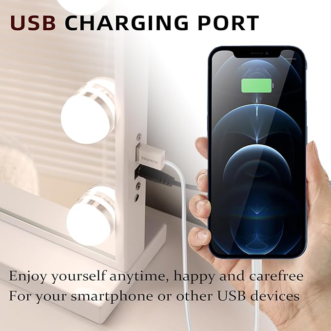 - Smart Charging Station(Output 10V2A): Enjoy makeup time easily with Fenair hollywood makeup mirror,designed with a USB charging port on the side of the Hollywood vanity mirror provides convenient charging for your phone/pad.
