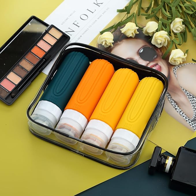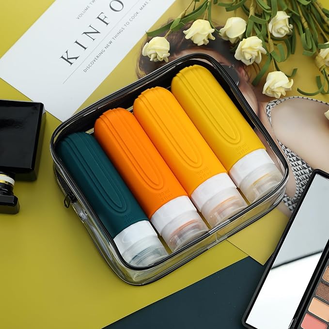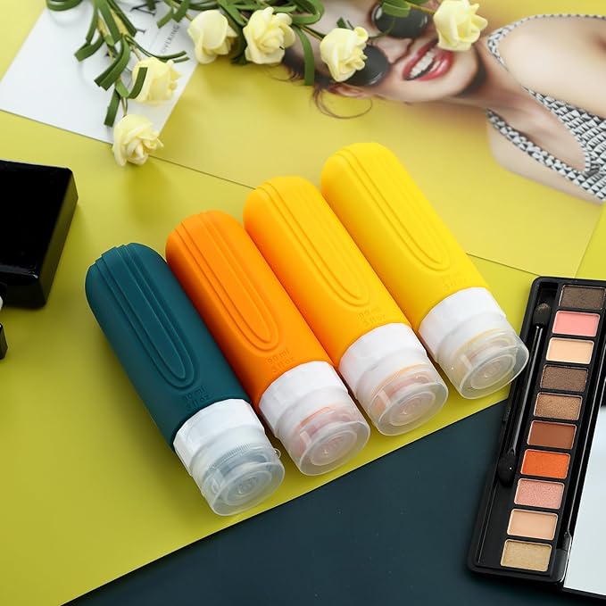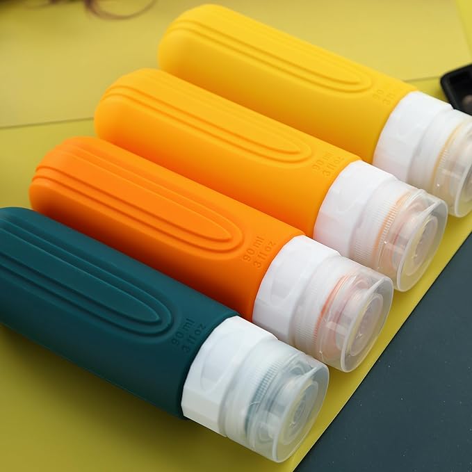 Travel Bottles for Toiletries, Tsa Approved 3oz Travel Size Containers BPA Free Leak Proof Refillable Liquid Silicone Squeezable Travel Accessories for Shampoo Conditioner Lotion (4 Pack)