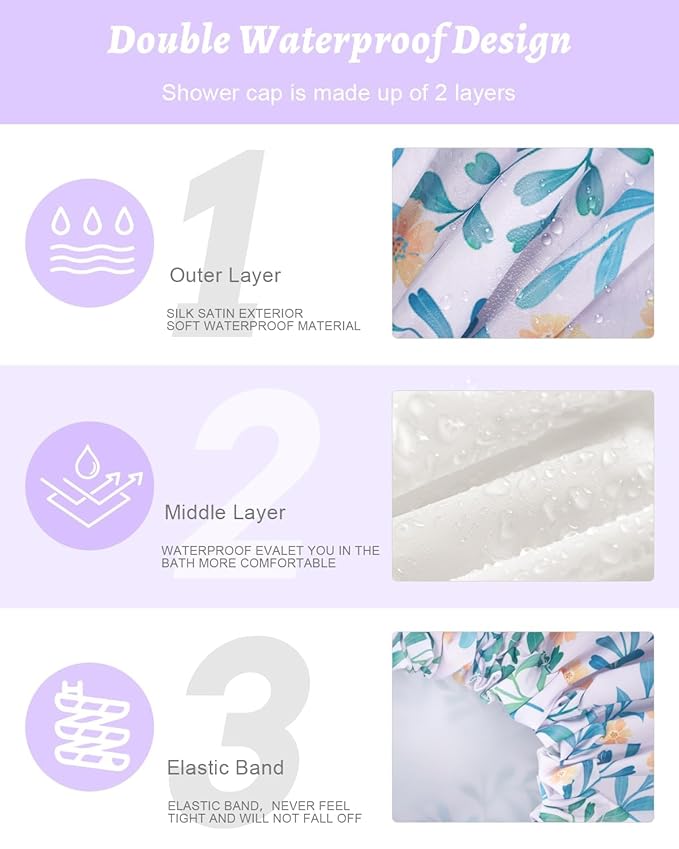 - [Double Waterproof Material]: Aquior shower caps with a layer of EVA protection inside, and polyester material outside, Protect your hair from all aspects