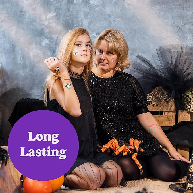 - Suitable for All Ages: These Day of the Dead tattoos are safe for both kids and adults. They make fantastic party favors, goody bag fillers, and creative additions to Halloween costumes.