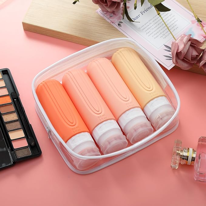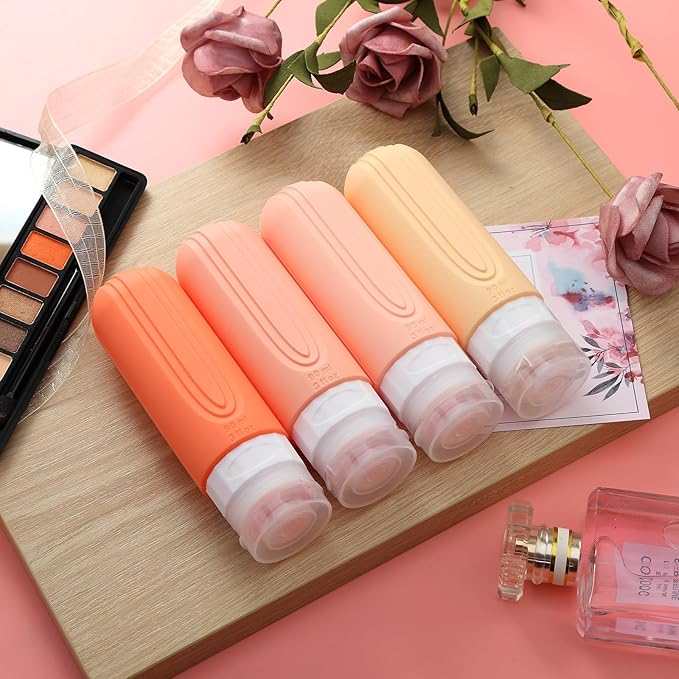 Travel Bottles for Toiletries, Tsa Approved 3oz Travel Size Containers BPA Free Leak Proof Refillable Liquid Silicone Squeezable Travel Accessories for Shampoo Conditioner Lotion (4 Pack)