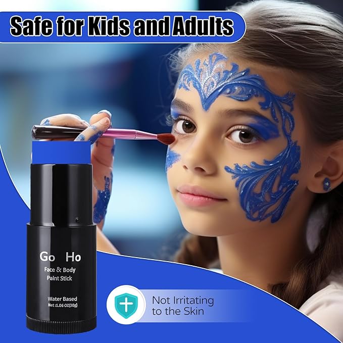 Go Ho Royal Blue Face Body Paint Stick,Easily Washable Formula Face Paint Stick,Non-toxic Full-coverage Cream Blue Body Paint for Halloween Cosplay SFX Mystique Smurf Clown Makeup