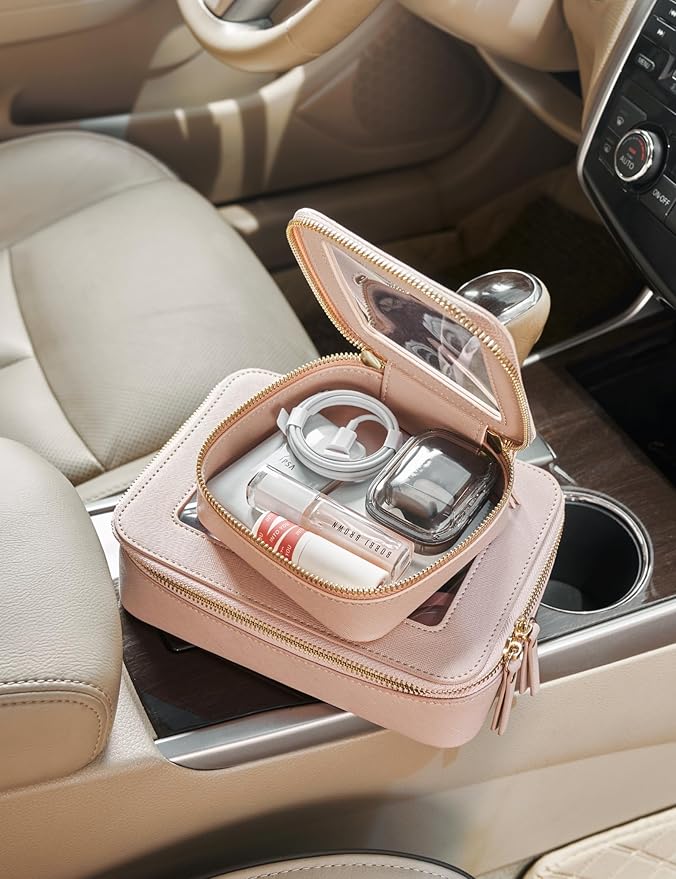 - [Mini but Mighty] – The pink mini makeup bag measures 5'' x 4.7'' x 2'' (12.7cm x 12cm x 5cm), perfect for holding daily mini essentials including lip balms, hair ties, jewelry, Air Pods, charging cords and medications. Slip it into your purse, backpack, everyday tote or travelling bag for easy access to your must-have items.