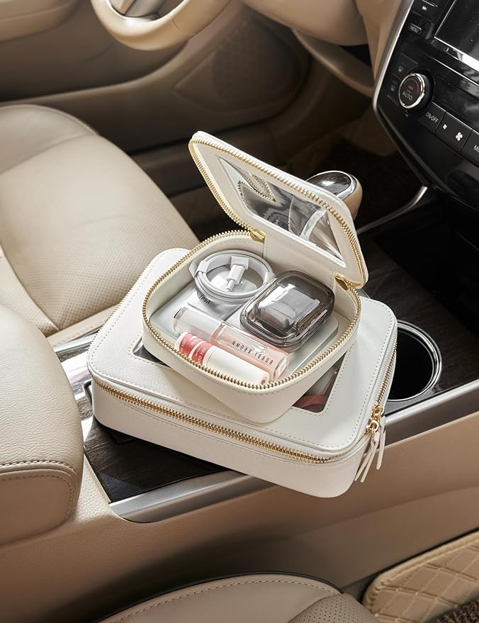 - [Mini but Mighty] – The white mini makeup bag measures 5'' x 4.7'' x 2'' (12.7cm x 12cm x 5cm), perfect for holding daily mini essentials including lip balms, hair ties, jewelry, Air Pods, charging cords and medications. Slip it into your purse, backpack, everyday tote or travelling bag for easy access to your must-have items.